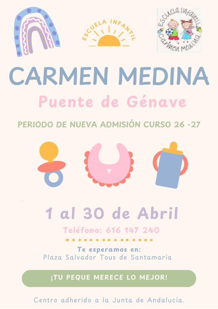 Se abre el plazo de nueva admisión para el curso 2026-2027 en la Escuela Infantil Carmen Medina, en Puente de Génave.